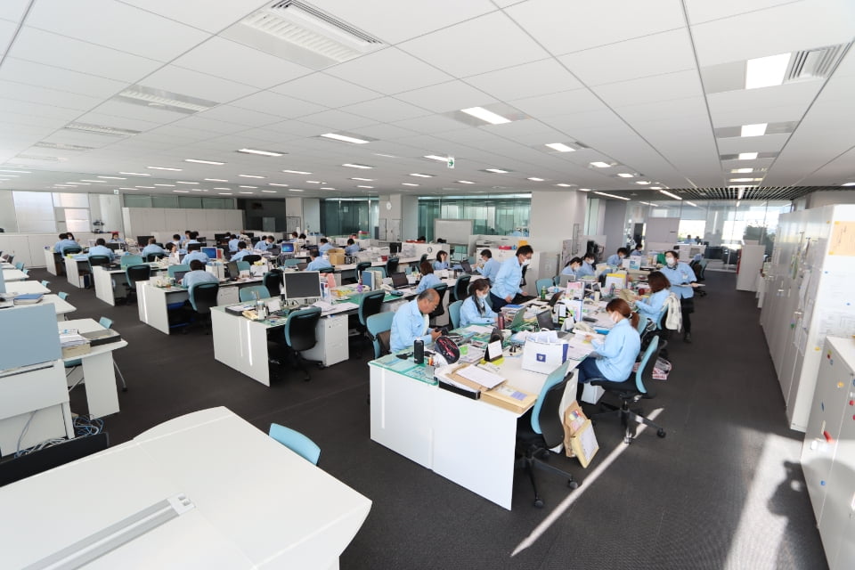 琵琶湖の近くにあるこちらの事業所では、古河電工のエレクトロニクス研究所と古河電工グループの自動車製品を担当している古河AS(株)の本社があり、研究~製造・販売までおこなっています。約600名が車通勤、約100名が電車通勤しており、最寄り駅の尼子駅から徒歩2分という好立地です。