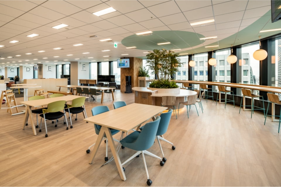 東京駅から徒歩1分の場所に本社を構えています。ビル内にはコンビニや食堂、レストランが充実し、周辺にも飲食店がたくさんあります。大きなイベント会場も有しており、入社式は毎年本社で開催します。皆さんとお会いできることを楽しみにしています。