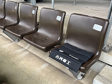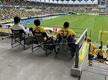 千葉県内の障がい者等就労支援施設に通所している方とそのご家族を対象に、ジェフユナイテッドのホームスタジアムであるフクダ電子アリーナ(千葉県千葉市)に「古河電工シート」と称した座席を用意して、Jリーグ・WEリーグの各試合に約30名を招待しています。各座席には、古河電工のロゴが入ったシートクッションをセットし、観戦後は記念品としてお持ち帰りいただきます。