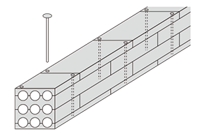 ⑤ 全段組み上がった後、1構造体ユニット当たり対角に2本のピンを差し込みます。