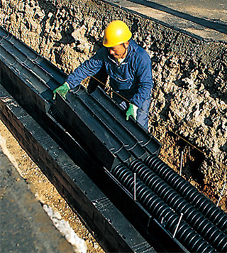 バックホウの衝撃にも耐える強度によりケーブル損傷リスク低減