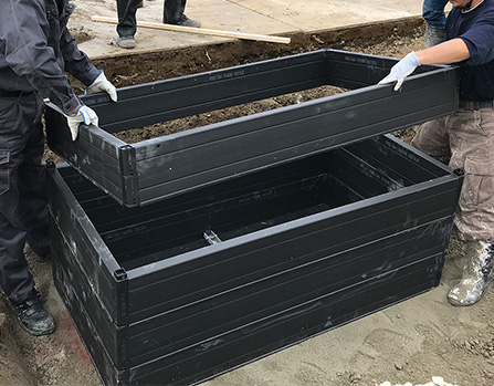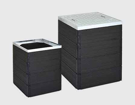 一段200mm高さの側壁を積み重ねて施工する組立式ハンドホールです。