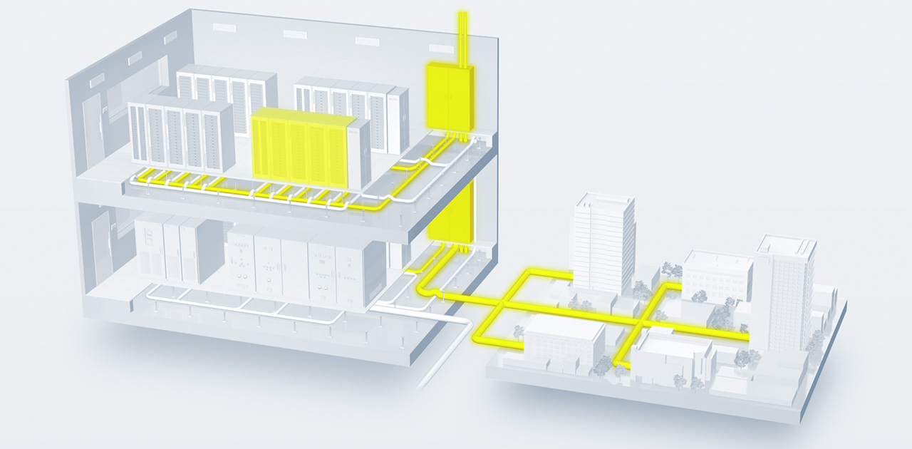 これまでに培った光通信、電力、エレクトロニクスの技術を活かした信頼性の高い製品群で、インフラとしてのデータセンタをさまざまな領域から支えます。