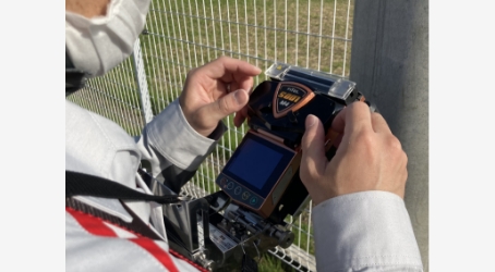 落下防止用のネックストラップや作業台付きのネックストラップを使用することで架空作業をサポートします。