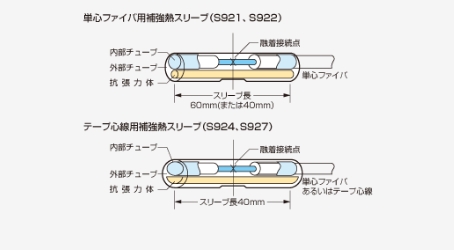 補強熱スリーブは、光ファイバ融着部の補強に用います。