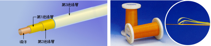 標準タイプのTEX-Eはハンダ付け可能で、変性ポリエステルの耐熱性樹脂とポリアミド樹脂 からなる3層の絶縁層を有し、古河電気工業によって開発されました。