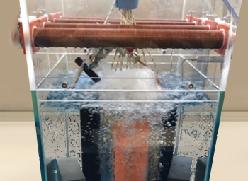 液浸使用状況:液体内で反応し、気泡を発生しながら放熱する様子