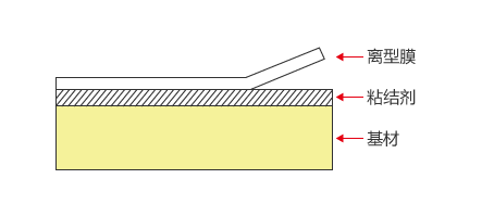 所谓胶带,是在被称为基材的支撑体一侧在无尘车间内把粘结剂均匀地涂布成一体后,再在粘结剂的表面贴合上了一层经过离型处理的薄膜。