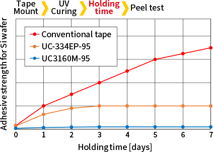 即使粘贴后放置时间较长其粘结力的变化也很小,能够维持轻易剥离的性能