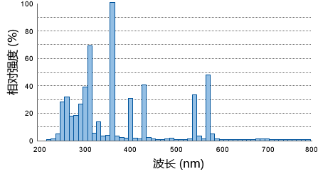 以365nm为主波长,同时也能有效地放射出254nm,303nm,405nm,436nm等波长的光源。