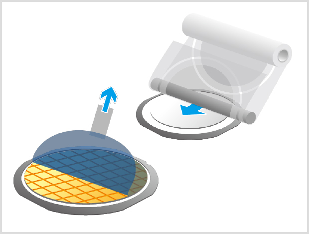 For SDBG/GAL processesOur back-grinding tape for SDBG/GAL processes allows ultrathin wafers to be processed into chips with high quality and high yield.