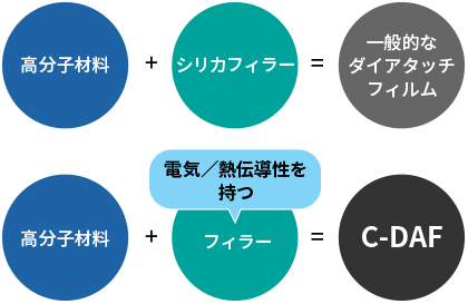 - メモリデバイスでのスタック用など絶縁性が必要な場合は、電気伝導性を持たないC-DAFをご提案できます